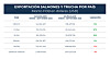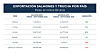 Asimismo, comparando las cifras con el mes anterior (agosto 2023), en septiembre se exportaron 53.840 toneladas avaluadas en US$434 millones, mientras que durante el octavo mes los montos enviados fueron de 62.124 toneladas por US$529 millones, representando un descenso de 13% y 17%, respectivamente.