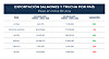Asimismo, comparando las cifras con el mes anterior, es decir, marzo de 2024, en este trimestre se exportaron 63.138 toneladas avaluadas en US$524 millones, lo que representa para este abril un descenso en volúmenes de 7,1% y 5,8%, en retornos (58.616 toneladas por US$493 millones).