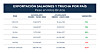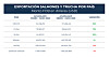 Asimismo, comparando las cifras con el mes anterior (mayo de 2023), en junio de este año se exportaron 57.118 toneladas avaluadas en US$508 millones, en tanto que durante el quinto mes de este año, los montos enviados fueron de 59.623 toneladas por US$543 millones, representando una caída de 6,5% en retornos y 4,2% en volumen.