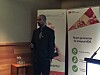 Carlos Díaz, bioquímico del área de Inocuidad de Aquagestion, dirigió la exposición “S. aureus en alimentos: Dilucidando las rutas de contaminación en planta de procesos, un problema de salud pública dentro de la industria alimentaria”.