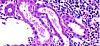 Salmón Atlántico afectado por un cuadro de necrosis tubular aguda muestra una disminución de la altura del epitelio tubular. Foto: Marcos Godoy