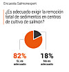En la última pregunta realizada a nuestros lectores “¿Es adecuado exigir la remoción total de sedimentos en centros de cultivo de salmón?”, el 82% respondió que sí es adecuado, y el 18% afirmó que no es adecuado.