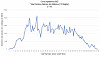 Para el caso del salmón Atlántico, en tanto, la curva difiere además de acuerdo a la región de cultivo, ya que en Los Lagos y Aysén la mayor mortalidad ocurre a las 13 semanas donde luego desciende y se mantiene estable hasta el final del ciclo. No obstante, en Magallanes la curva tiene un patrón diferente.