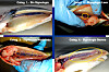 Para el caso del BKD, realizaron una serie de seguimientos y categorizaciones de peces enfermos por ecografía, dependiendo del nivel de daño observado en los órganos, los que luego fueron confirmados mediante necropsia e histopatología y correlacionados en un alto nivel con el diagnóstico.