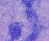 Gran parte del tejido blando de las mandíbulas se pierde debido a la degradación enzimática que es capaz de realizar la bacteria.
