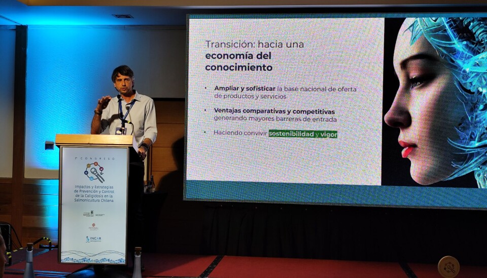 Dentro de los aspectos que destacó el académico, indicó que “la problemática del Caligus tiene que ver muchos factores, como sostenibilidad y comunidad, y eso es en el fondo transitar hacia una economía del conocimiento. Una economía donde el conocimiento agrega valor, barreras competitivas, mejoras en productividad y disminuye los riesgos. Y una economía del conocimiento es aquella economía donde lo que circula no son solamente bienes y servicios o productos, sino que circula el conocimiento. Y yo creo que este Congreso es una tremenda instancia para que se convierta en un verdadero foco de esta economía del conocimiento, que amplía y sofistica la base de nuestros productos y servicios, que otorga ventajas competitivas y comparativas a nuestros productos y servicios, y que lo hace convivir con la sostenibilidad”.