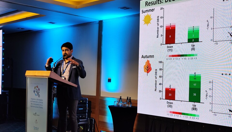 Otras de las presentaciones destacadas fue la realizada por Constanza Sáez, Profesional de Investigación del Incar, quien se refirió a “Explorando la respuesta genómica de Caligus rogercresseyi a la selección de fenotipos resistentes”. Según lo expuesto por la profesional, este estudio tuvo como objetivo explorar la modulación del transcriptoma y los cambios en las comunidades bacterianas de C. rogercresseyi en respuesta a salmón del Atlántico provenientes de un programa de mejoramiento genético. Para ello, se recolectaron muestras de C. rogercresseyi desde tres familias de salmones catalogadas como fenotipos susceptibles (S), resistentes (R) y de resistencia adquirida (RA), luego de tres infecciones sucesivas.