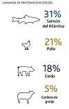 Según un estudio publicado por la Global Salmon Initiative GSI, el salmón es uno de los animales más eficientes en cuanto al Índice de Conversión Alimenticia (FCR, por sus siglas en inglés) que mide la productividad de los diferentes métodos de producción de proteínas, e indica los kilogramos necesarios para aumentar un kilogramo de peso corporal del animal.