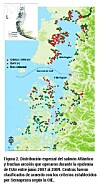 Análisis espaciales identificaron la presencia de centros súper-diseminadores, que fueron definidos como aquellos centros que transmitieron ISAv a centros con peces susceptibles a una tasa que excedió la tasa de transmisión para una fracción de todos aquellos infectados (Woolhouse y col. 2005; Matthews y col. 2006). El impacto de estos centros súper-diseminadores fue evidente durante la fase inicial de diseminación de la epidemia, dado que sólo tres centros pudieron haber generado 13 de los 21 casos iniciales (62%), lo que es consistente con la regla 20/80 que postula que alrededor de un 20% de los individuos mas infecciosos son responsables del 80% de la transmisión de la enfermedad (Woolhouse y col. 1997). Los resultados de este estudio tienen importantes implicancias prácticas y consecuencias para el diseño e implementación de estrategias de intervención. Por ejemplo, si fuera posible identificar en forma temprana aquellos super-diseminadores, sería posible mejorar en forma significativa la eficiencia en los esfuerzos de control enfocándose en los más infecciosos en vez de intervenciones establecidas de forma aleatoria (Lloyd-Smith y col. 2005). Las estimaciones de las distancia promedio (15 km) en la Región de Los Lagos fueron consistentes con el tamaño de los clústeres espacio-temporales reportados previamente (Mardones y col. 2009) y casi la mitad de la distancia promedio estimada en la Región de Aysén (25,4 km). Esto sugiere que las estrategias de control debieran enmarcarse en un radio entre 10-15 km y no 5km como lo sugiere la OIE. Actualmente, Sernapesca establece un área de control de 5,5 millas náuticas, que equivalen a 10 kilómetros (Res. N° 3889).